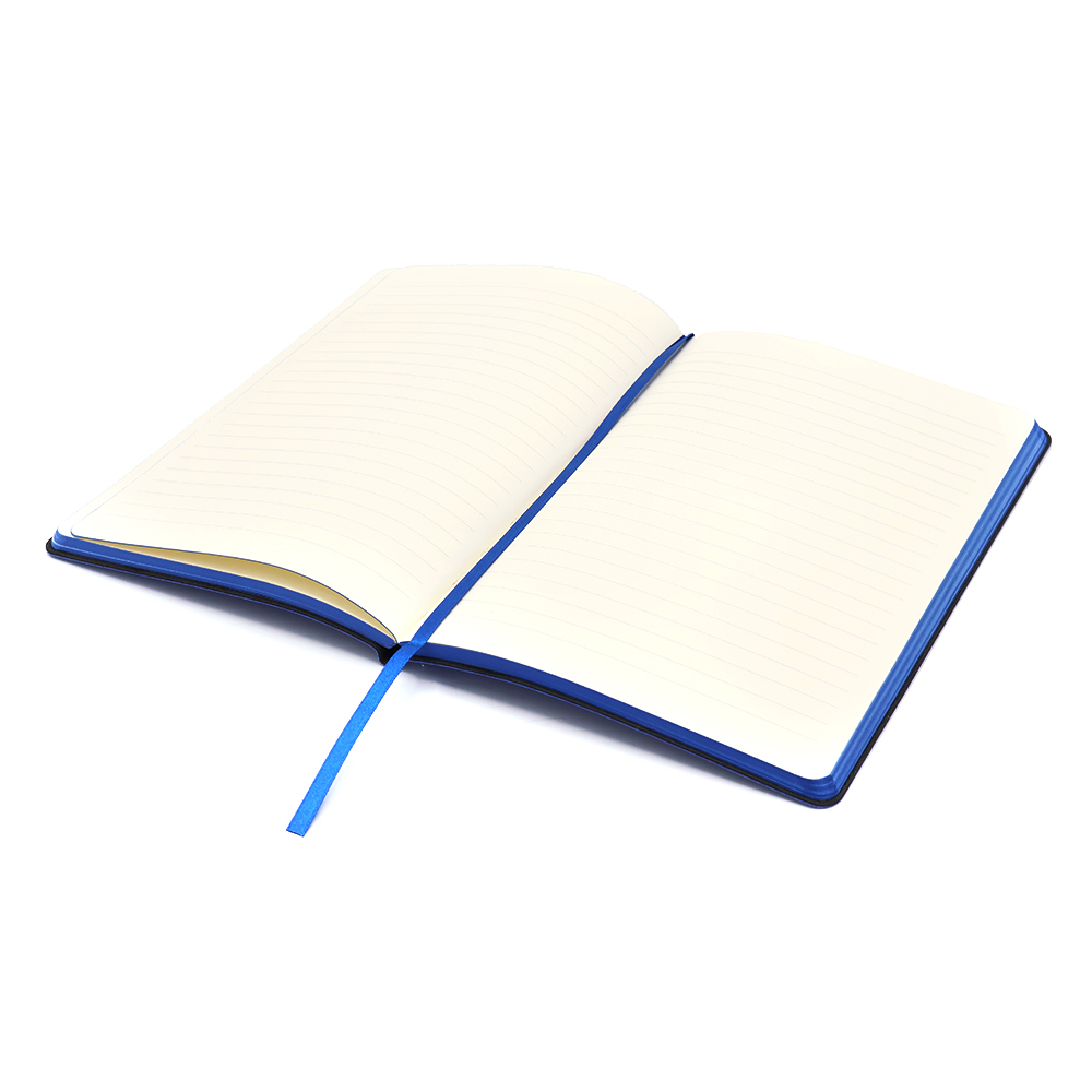 Блокнот формата А5 в мягкой обложке из искусственной кожи. Материал обложки - полиуретан. Размеры: 213*143мм, 96 листов, разлинееные страницы, бумага плотностью 70г/м2, срез прокрашен в цвет обложки. Ляссе в цвет обложки.- Виды нанесений: Гравировка CO2-А2, УФ-печать А2, Тиснение, Тиснение фольгой, УФ-Лак, УФ-Цвет+Лак
