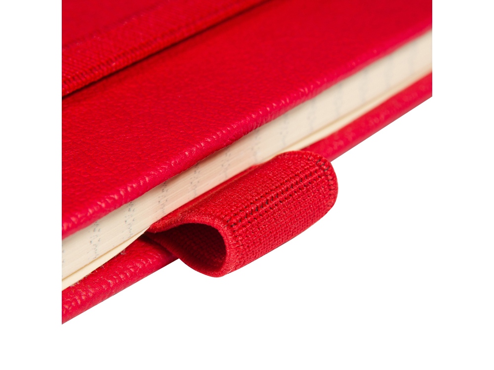 Твердая обложка с углами закругленной формы, фиксирующая резинка и ляссе в цвет обложки, петля для ручки и картонный карман для бумаги на внутренней стороне обложки наделяют блокнот практичностью.