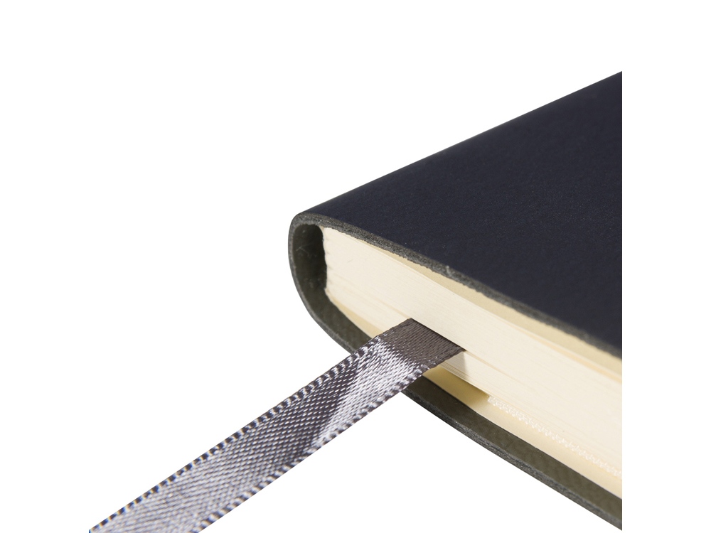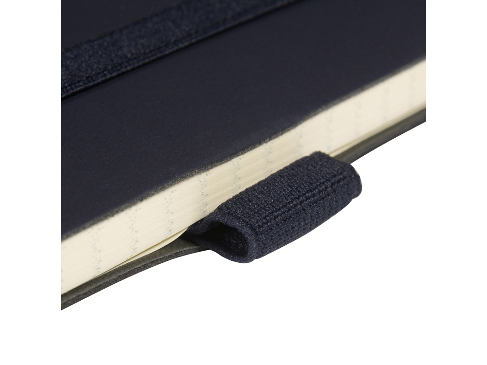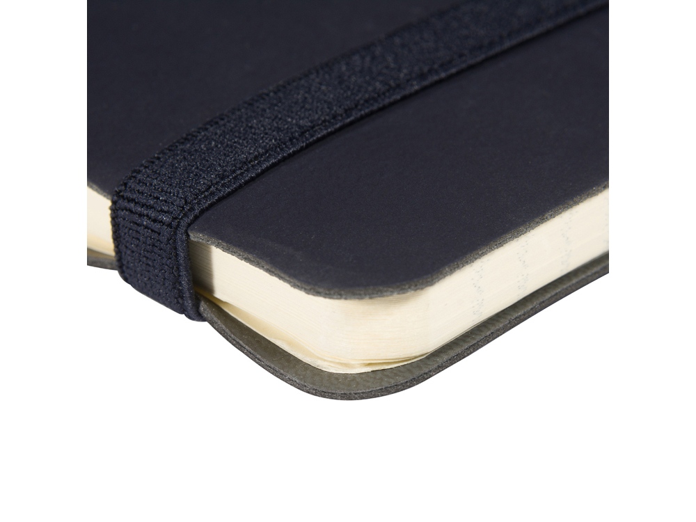 Гибкая (flex) обложка с углами закругленной формы, фиксирующая резинка и ляссе в цвет обложки, петля для ручки и картонный карман для бумаги на внутренней стороне обложки наделяют блокнот практичностью.
