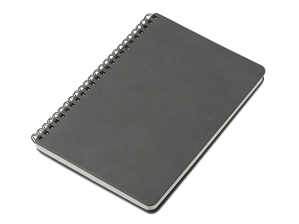 Стильный блокнот на спирали в твёрдой обложке из искусственной кожи.