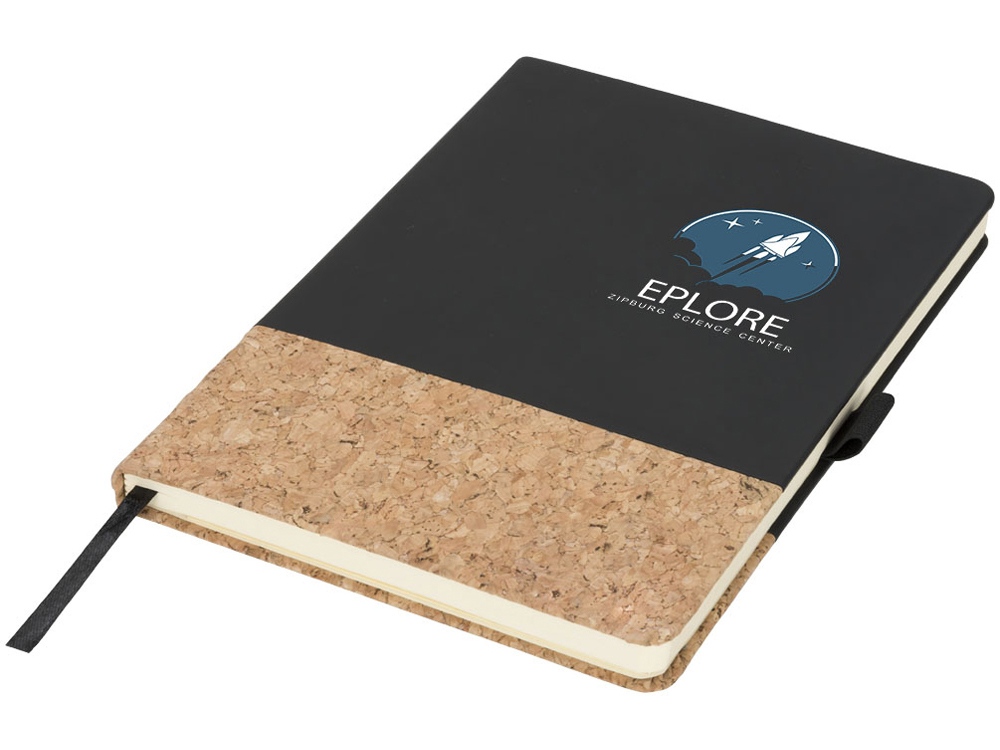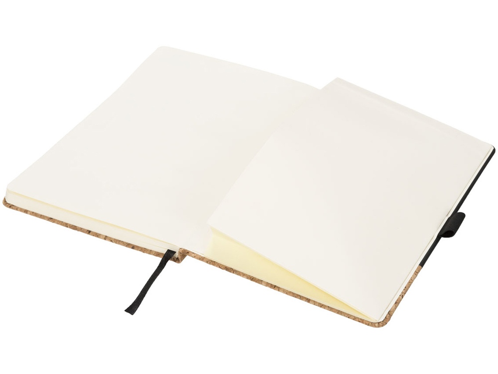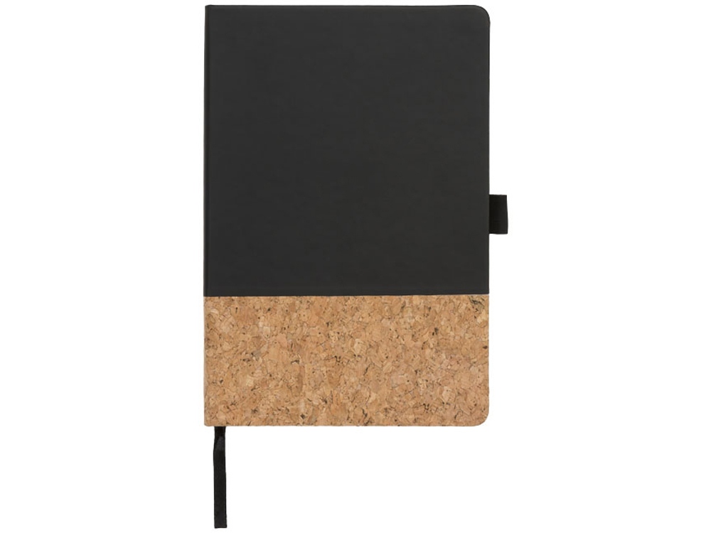 Блокнот Evora формата A5 из пробки и термополиуретана. Стильный блокнот формата A5 с твердой обложкой из искусственной кожи и пробки. Цветная эластичная застежка, лента-закладка, 80 листов линованной бумаги (80 г/м²) кремового цвета и расширяемый карман сзади для небольших заметок. Пробка и ПУ.