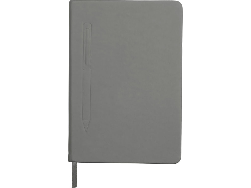 Блокнот формата А5 в твердой обложке со скруглёнными углами и блоком в линейку на 80 листов. Благодаря скрытой магнитной ленте на блокноте можно легко и надежно закрепить металлическую ручку. Зона с магнитом обозначена тиснением в форме ручки. -