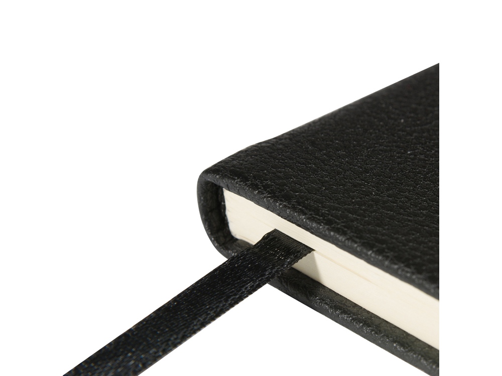 Твердая обложка с приятной фактурой, углами закругленной формы, книжный переплет и ляссе в цвет обложки наделяют блокнот практичностью.