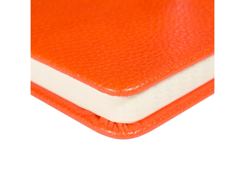 Твердая обложка с приятной фактурой, углами закругленной формы, книжный переплет и ляссе в цвет обложки наделяют блокнот практичностью.