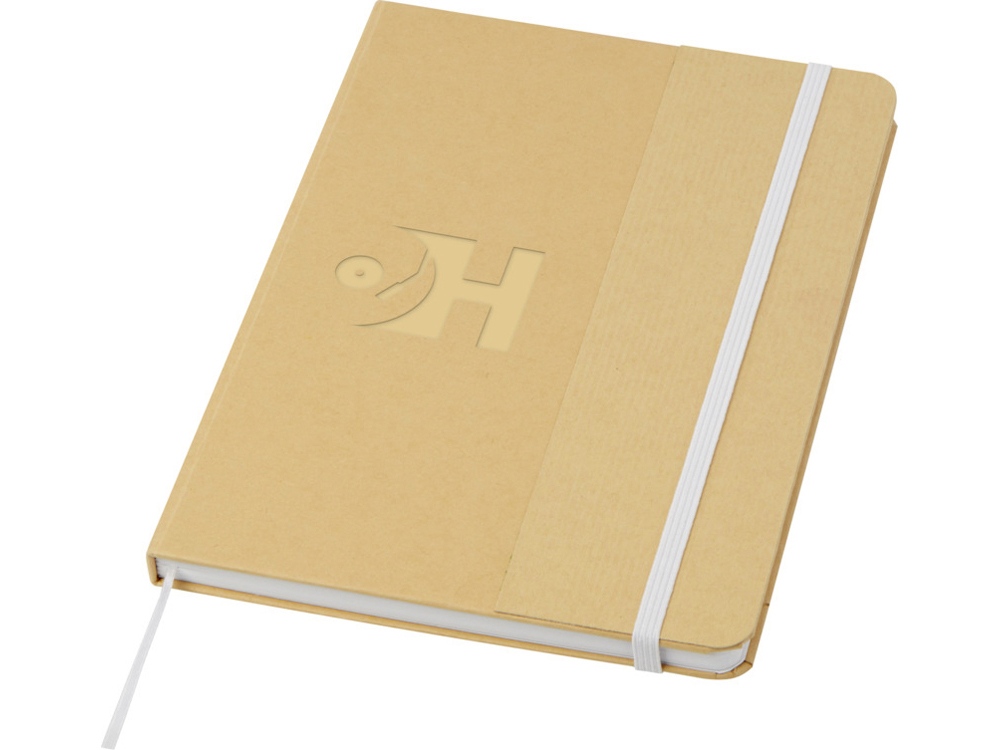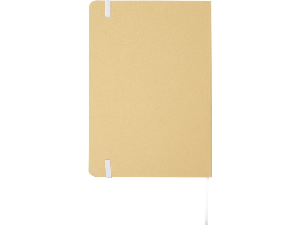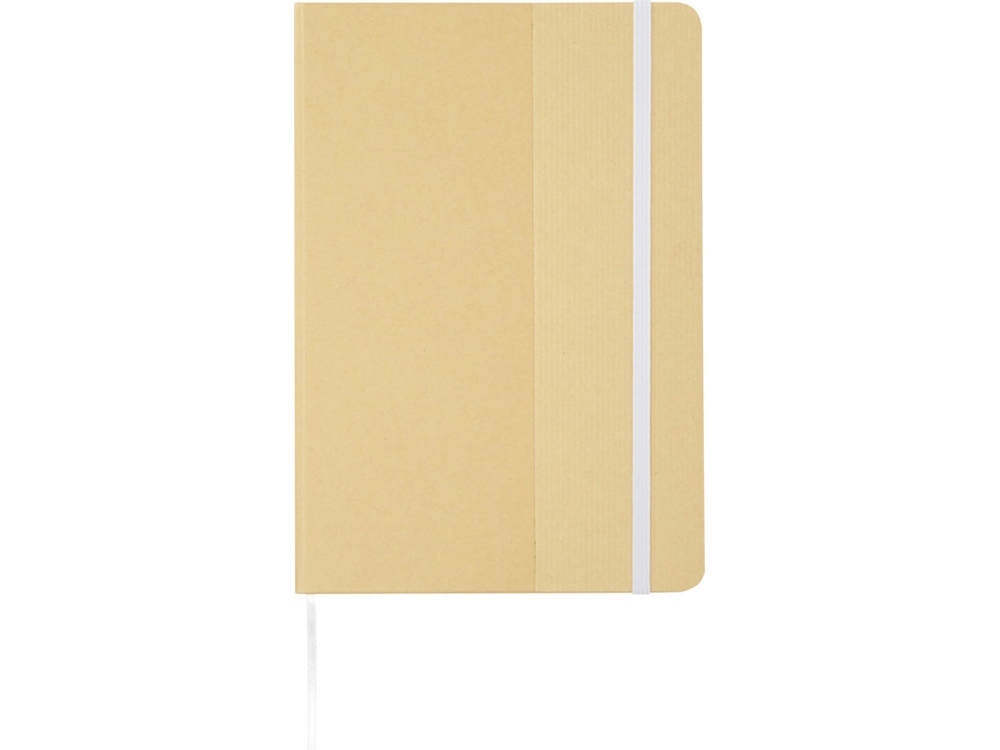 Блокнот формата А5 в твердой обложке из переработанного картона, 80 листов бумаги плотностью 70 г/м² в линейку. Блокнот имеет эластичную застежку, ленту и закругленные углы. FSC certified paper. FSC Mix 100% P7.1 CU-COC-877277.
