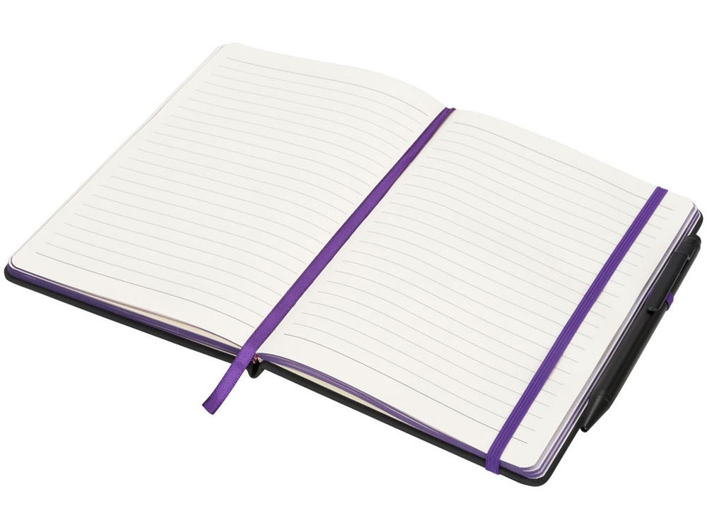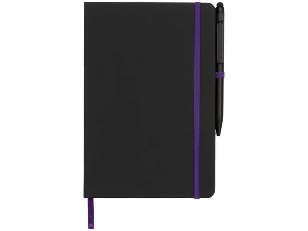 Блокнот Noir Edge среднего размера. Современный и стильный черный блокнот с мягкой на ощупь обложкой. Цветной край и цветные маркеры страниц, застежка-держатель для ручки. Предлагается с черной шариковой ручкой-стилусом. Блокнот содержит 96 листов линованной бумаги (70 г/м²) кремового цвета. ПУ. -