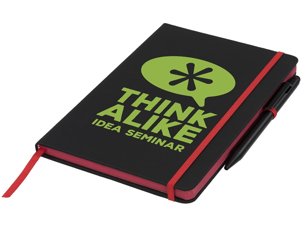 Блокнот Noir Edge среднего размера. Современный и стильный черный блокнот с мягкой на ощупь обложкой. Цветной край и цветные маркеры страниц, застежка-держатель для ручки. Предлагается с черной шариковой ручкой-стилусом. Блокнот содержит 96 листов линованной бумаги (70 г/м²) кремового цвета. ПУ. -