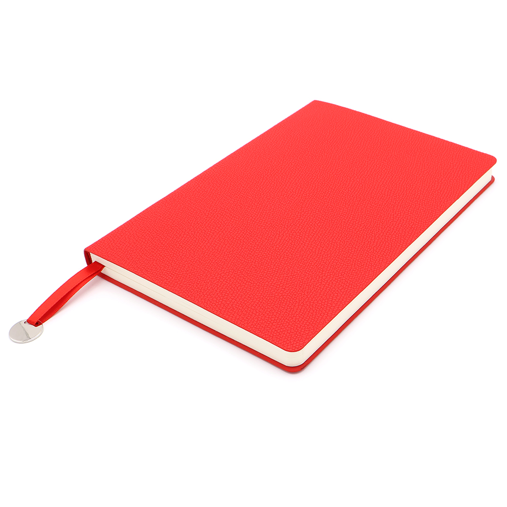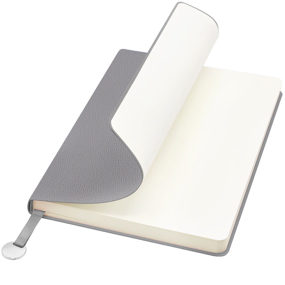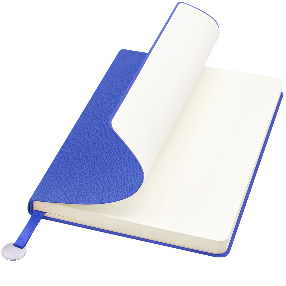 Блокнот формата А5 в гибкой обложке из искусственной кожи. Материал обложки — полиуретан. Ляссе и каптал блокнота соответствует цвету обложки. На конце ляссе присутствует металлический жетон, куда можно заказать гравировку логотипа организации. Размеры: 210*147*13 мм, 256 страниц / 128 листов, страницы в линейку, плотность бумаги — 70г/м2.- Виды нанесений: УФ-печать А2, Гравировка CO2-А2, Тиснение, Тиснение фольгой, УФ-Лак, УФ-Цвет+Лак, Гравировка-А1 (оптоволоконный лазер)
