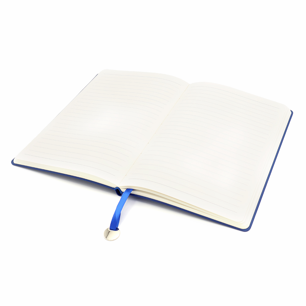 Блокнот формата А5 в гибкой обложке из искусственной кожи. Материал обложки — полиуретан. Ляссе и каптал блокнота соответствует цвету обложки. На конце ляссе присутствует металлический жетон, куда можно заказать гравировку логотипа организации. Размеры: 210*147*13 мм, 256 страниц / 128 листов, страницы в линейку, плотность бумаги — 70г/м2.- Виды нанесений: УФ-печать А2, Гравировка CO2-А2, Тиснение, Тиснение фольгой, УФ-Лак, УФ-Цвет+Лак, Гравировка-А1 (оптоволоконный лазер)