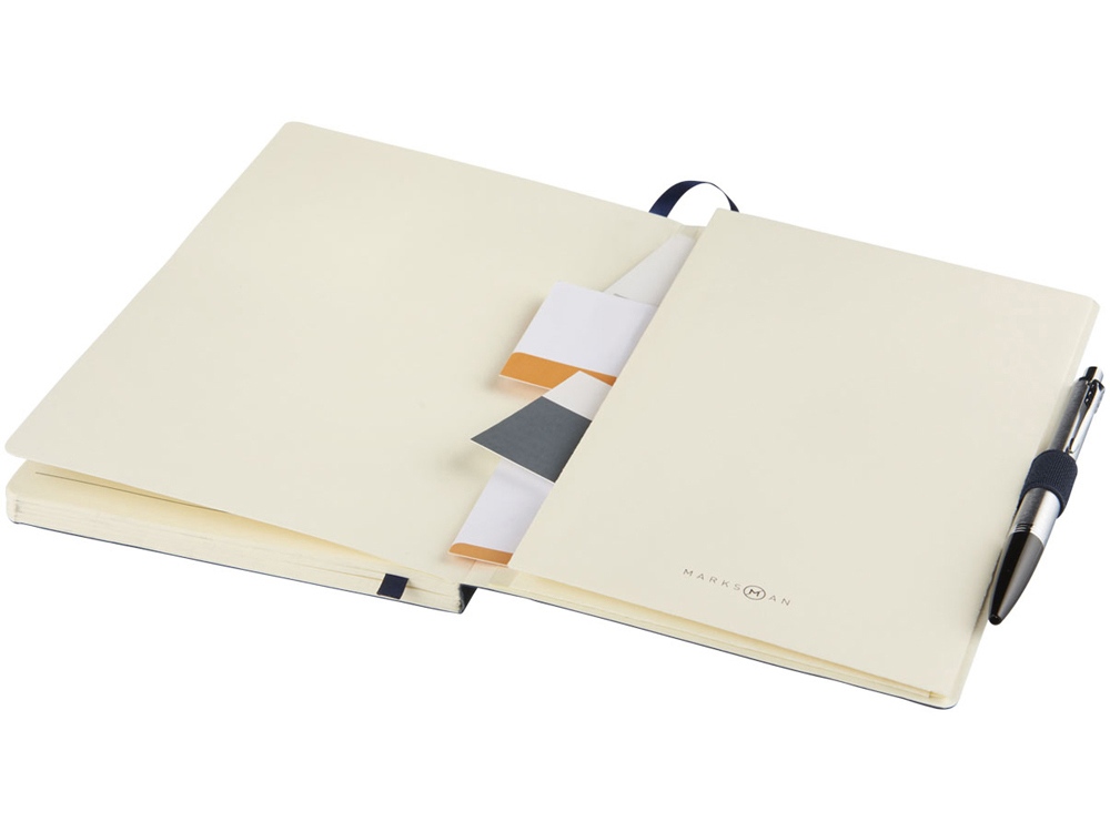 Блокнот Revello. Мягкий на ощупь, гибкий блокнот (размер А5 для ориентации) со встроенной эластичной застежкой, закладкой, петелькой для ручки и кармашка для документов на внутреннем форзаце сзади. 80 листов кремовой линованной бумаги (80г/м2). Упакован в черную коробку-рукав. Кожа ПУ. -