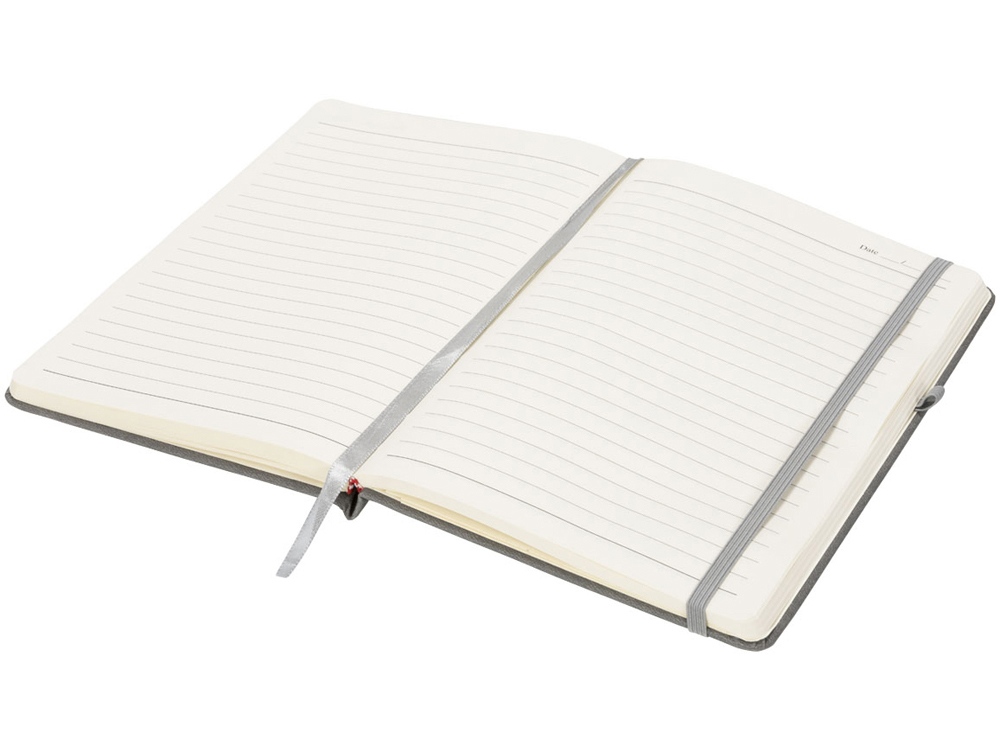 Блокнот Rivista среднего размера. Блокнот Rivista отличается стильным современным дизайном с высококачественной обложкой, идеально подходящей для нанесения логотипа и информации вашей компании. Предлагаются современные цвета. Также предусмотрена эластичная застежка, держатель для ручки, лента-закладка и внутренний кармашек на задней стороне обложки. Содержит 128 листов линованной бумаги (70 г/м²) кремового цвета. ПУ.