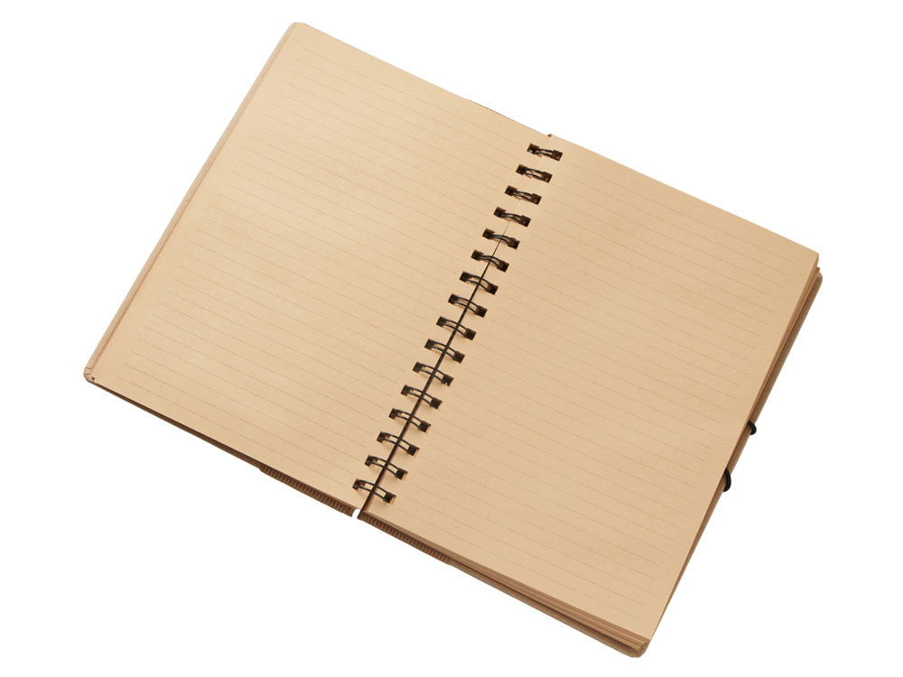 Крафтовый блокнот на спирали с фиксирующей резинкой. 80 листов коричневой бумаги 70 г/м2.