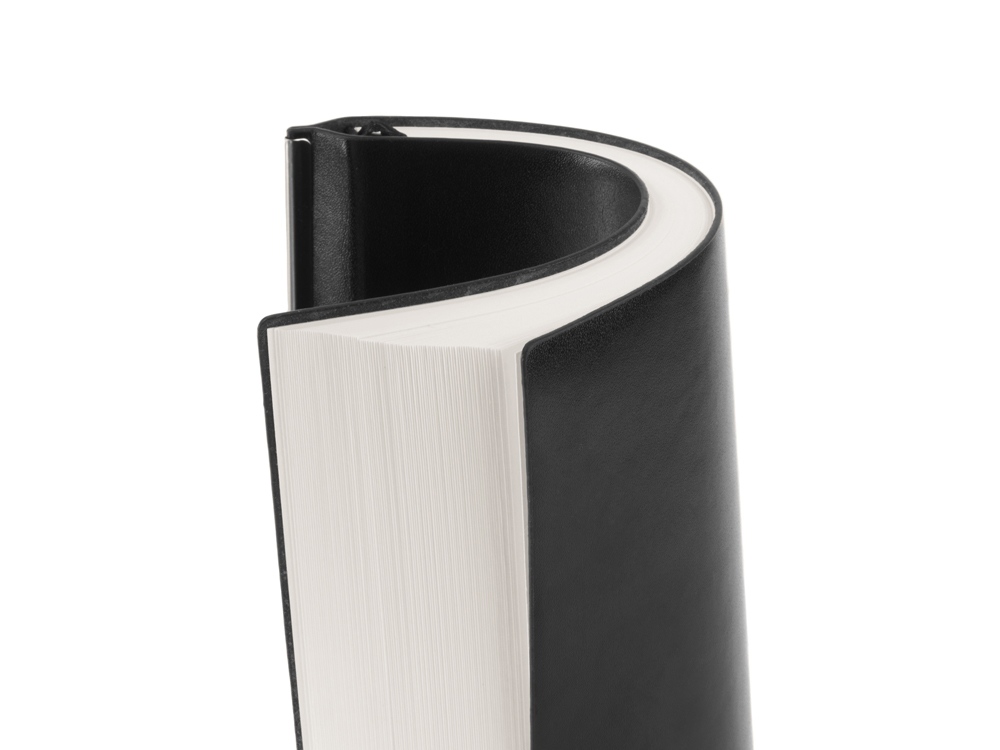 Гибкая обложка выполнена из искусственной кожи, корешок дополнен металлической вставкой.
