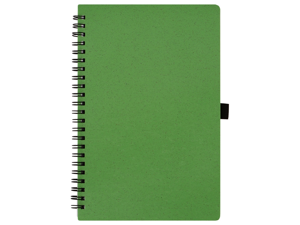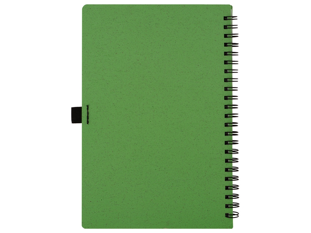Блокнот с обложкой из переработанной пшеницы и пластика. Блок состоит из 70 листов переработанной бумаги белого цвета. Крепление - пружина. Дополнен петлей для ручки. -