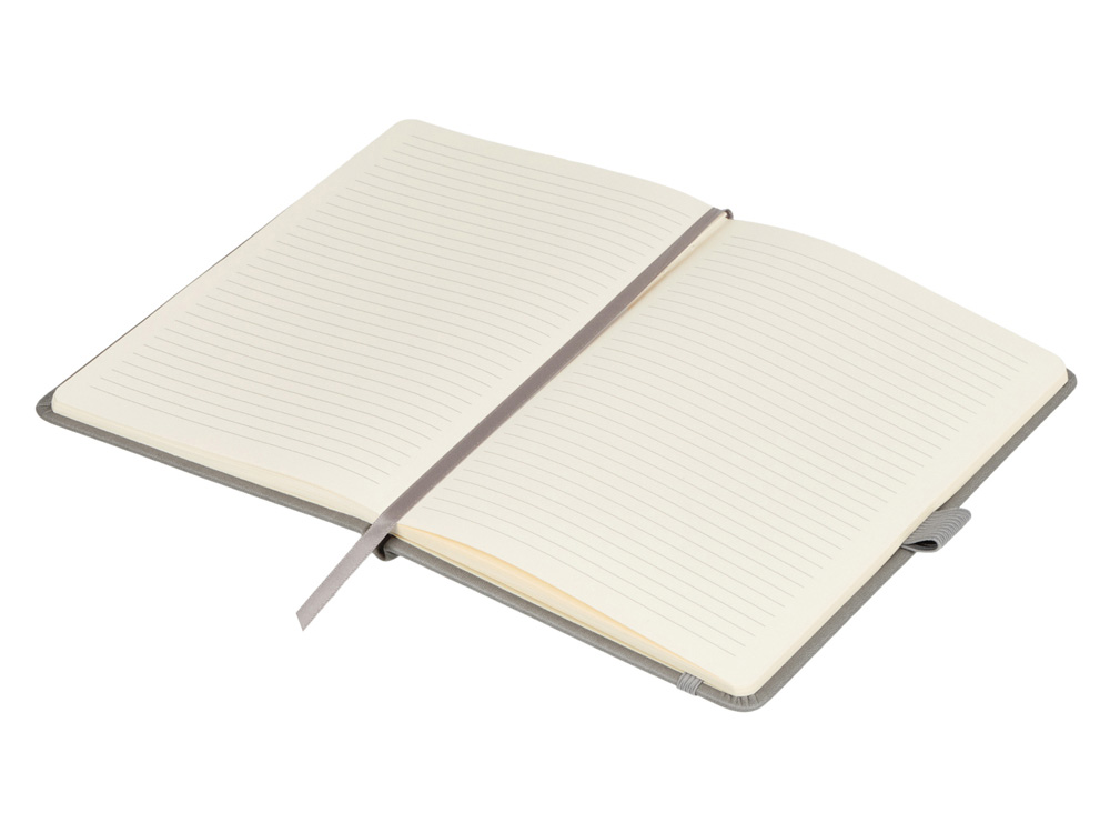 Блокнот в твердой обложке с закругленными углами представлен в широком ассортименте цветов. Внутри 80 листов кремового блока плотностью 70 г/м2 и ляссе в цвет обложки, которая упрощает навигацию по блокноту.