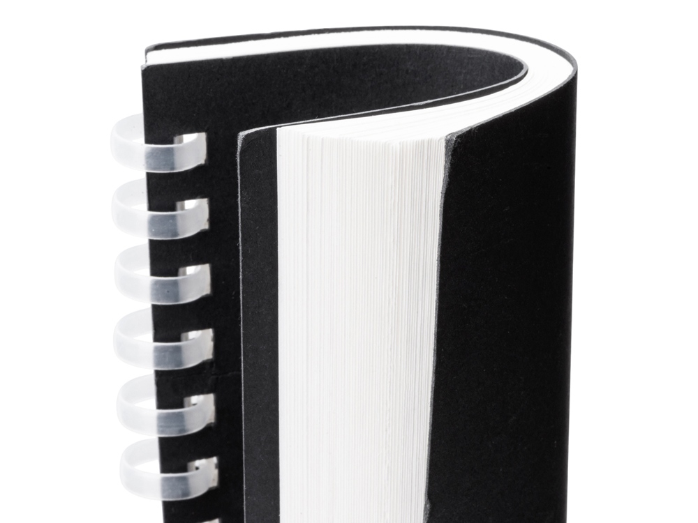 Мягкая прозрачная спираль облегчает блокнот, а гибкая обложка позволит сэкономить место в сумке, свернув блокнот.