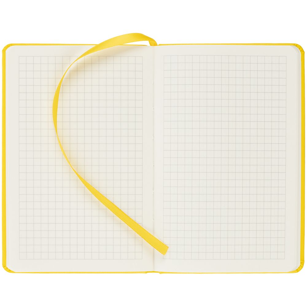 Твердая обложки из материала Latte, желтый, ляссе в цвет обложки.