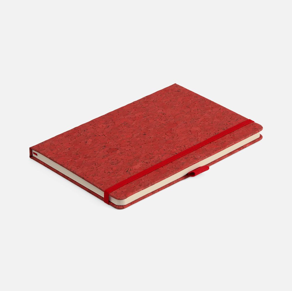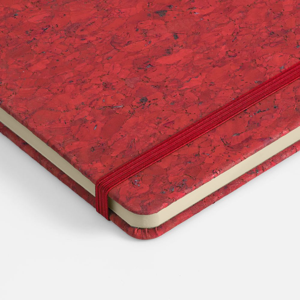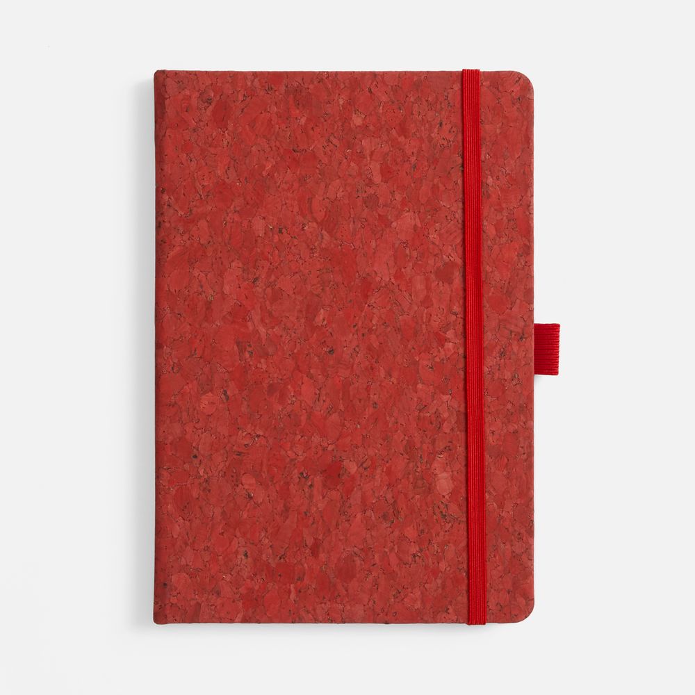 Cork County. Удобство в каждом штрихе!Блокнот с твердой обложкой из натуральной окрашенной пробки, дополнен петлей-резинкой для ручки, ляссе и резинкой в цвет обложки.