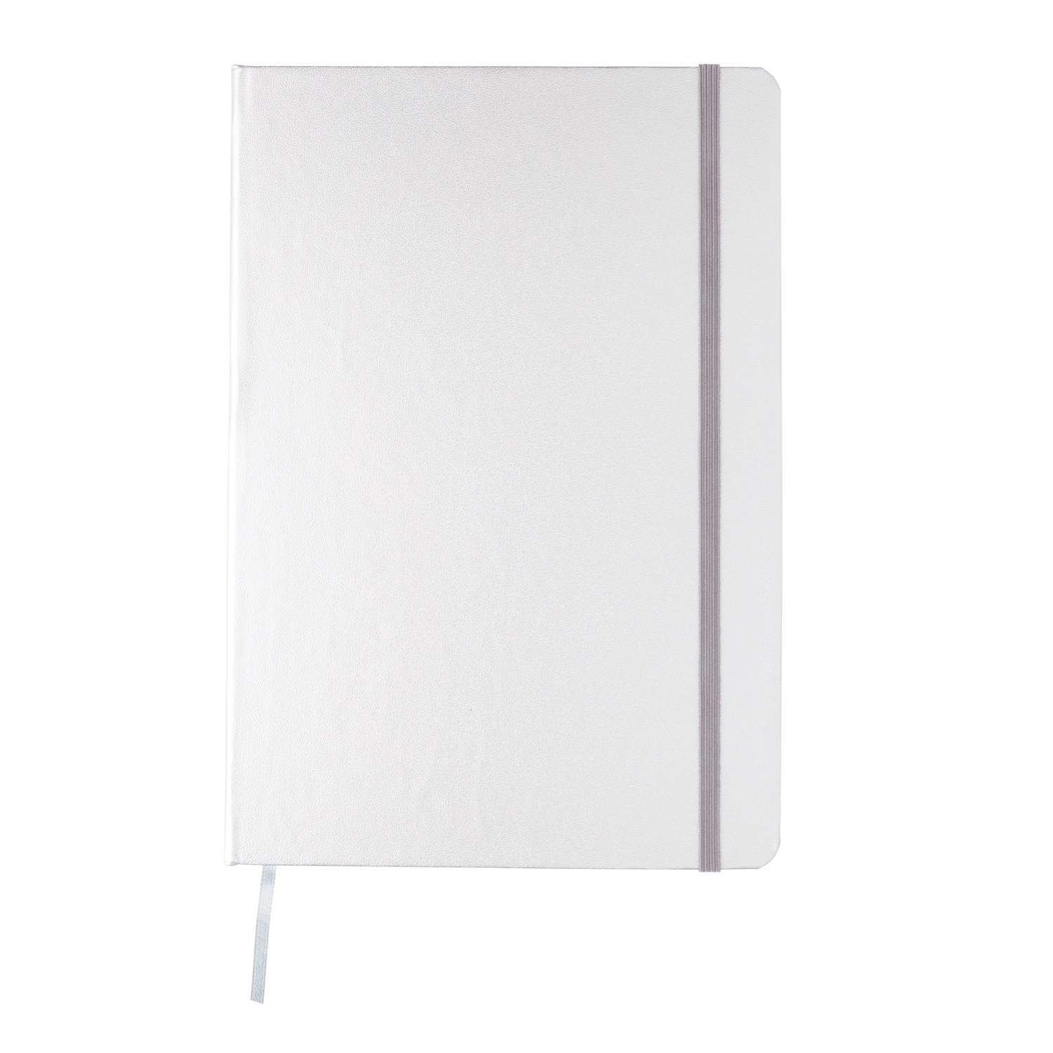 Блокнот для записей Basic в твердой обложке формата А5 на резинке с ляссе. 72 страницы, линованная бумага кремового цвета, плотностью 70 г/м2.