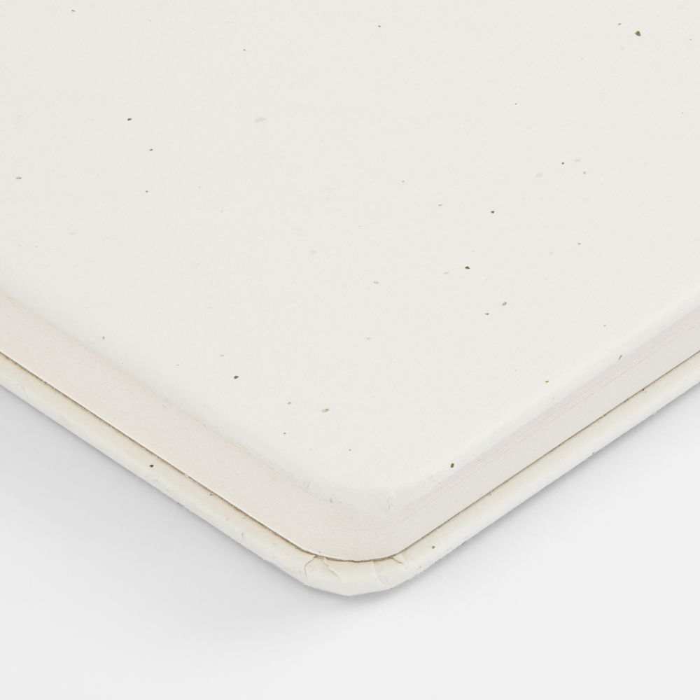 Бумага и обложка произведены из переработанных пакетов из-под молока. Обложка из картона плотностью 140 г/м2 .Блок в линейку:
