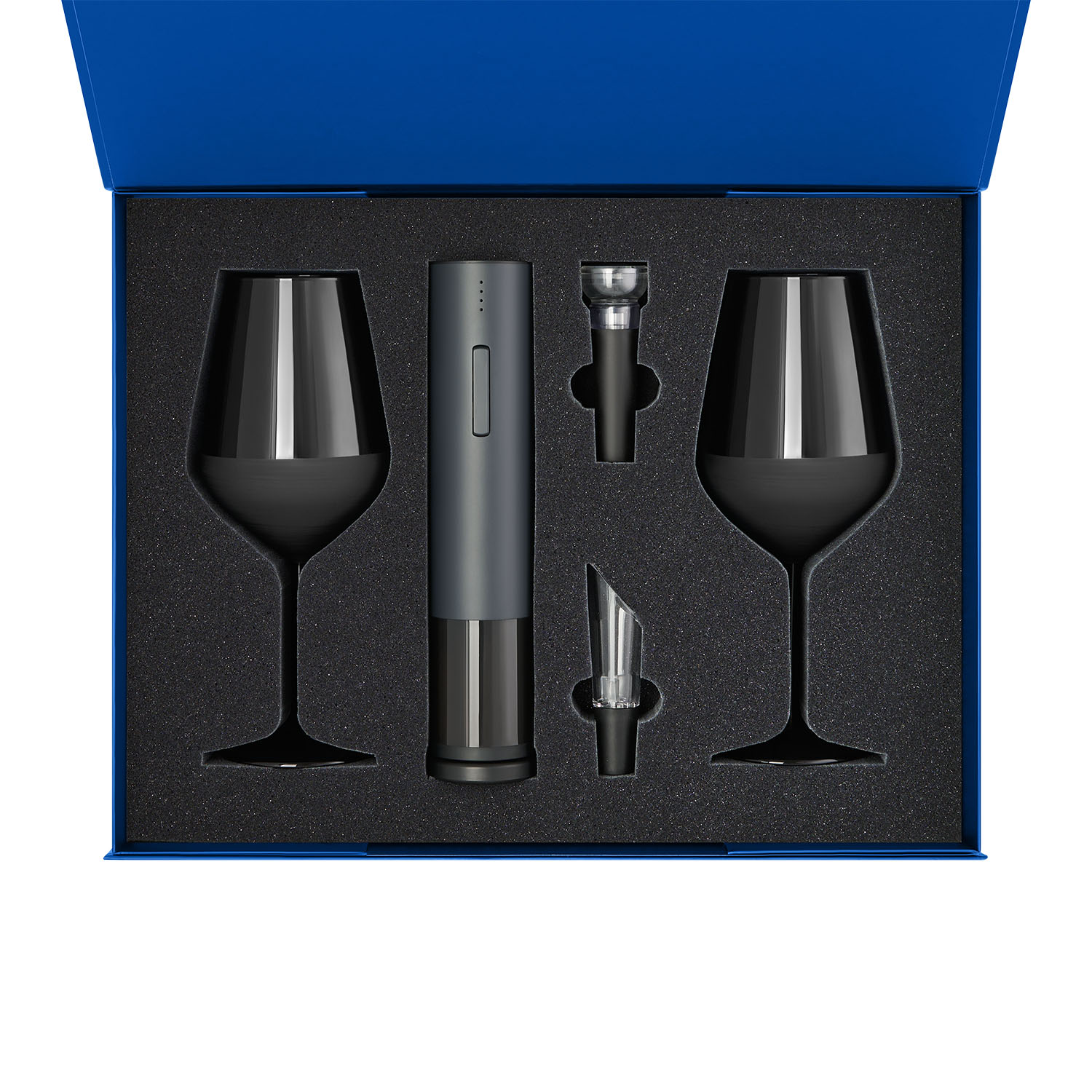 Подарочный набор 2 бокала для вина Black Edition + набор для вина Sacramento в синей коробке