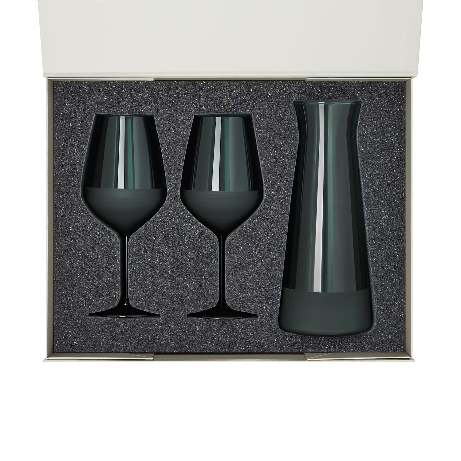 Подарочный набор декантер + 2 бокала для вина Emerald в серой коробке