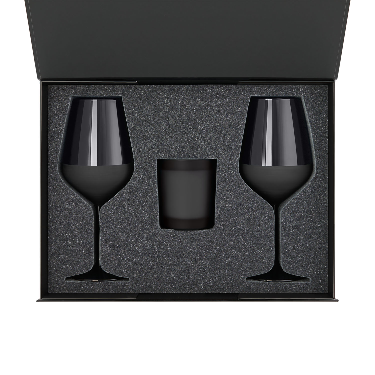 Подарочный набор свеча Enigma + 2 бокала для вина Black Edition в черной коробке
