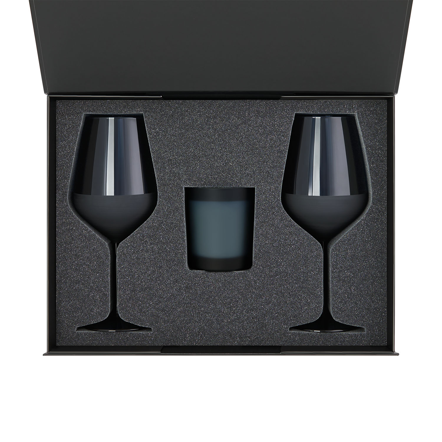Подарочный набор свеча Enigma + 2 бокала для вина Sapphire в черной коробке