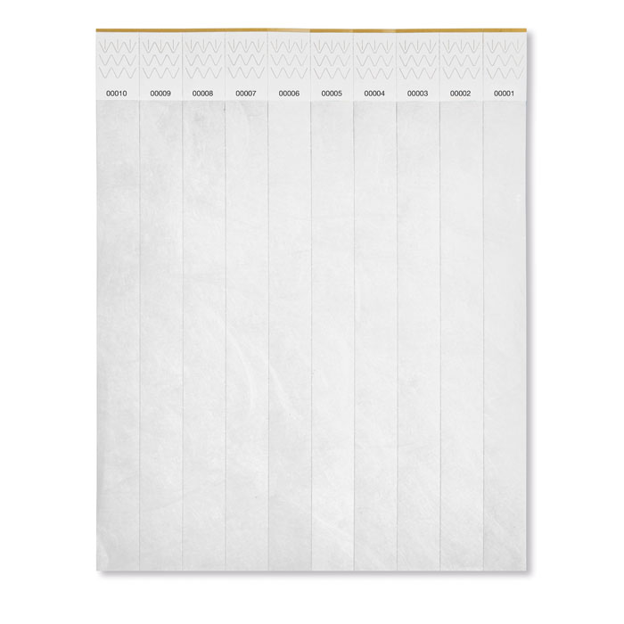 1 полоска на 10 мероприятий. DuPont ™ Tyvek® 19мм шириной. Включая уникальный код на каждом браслете. -
