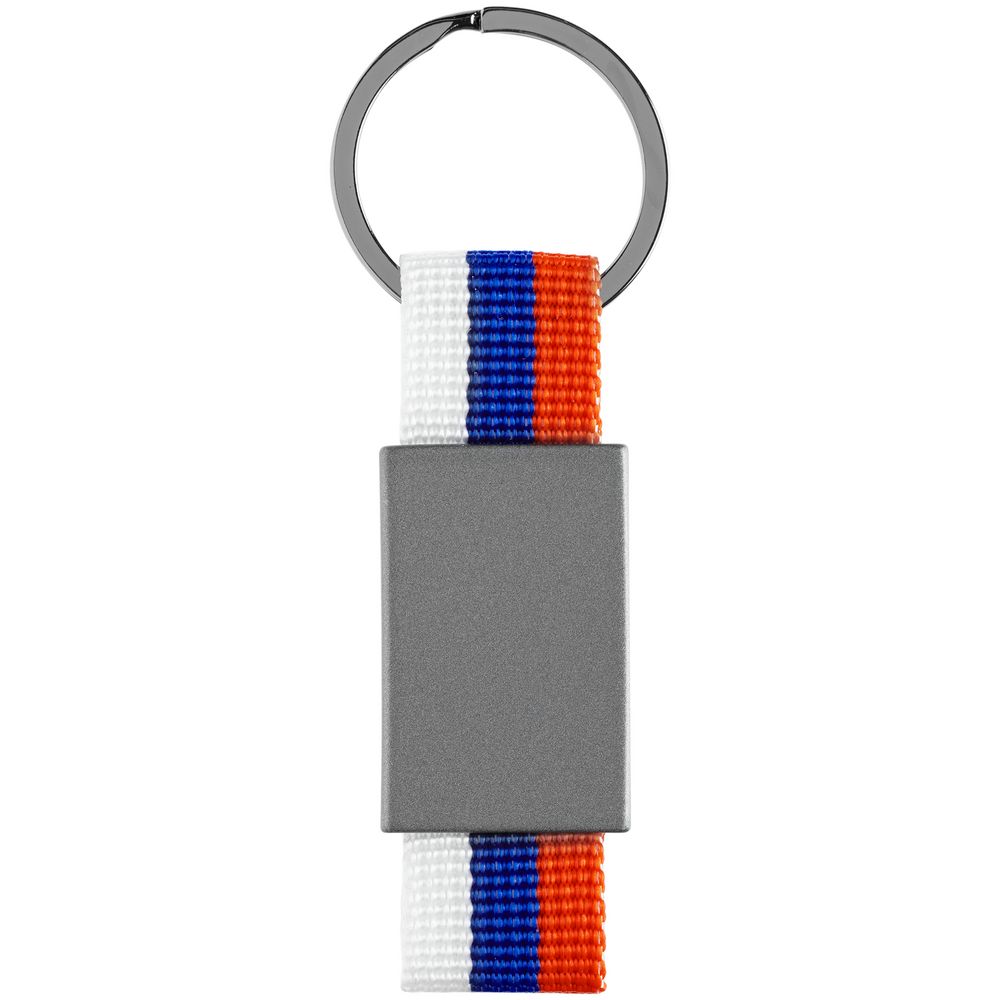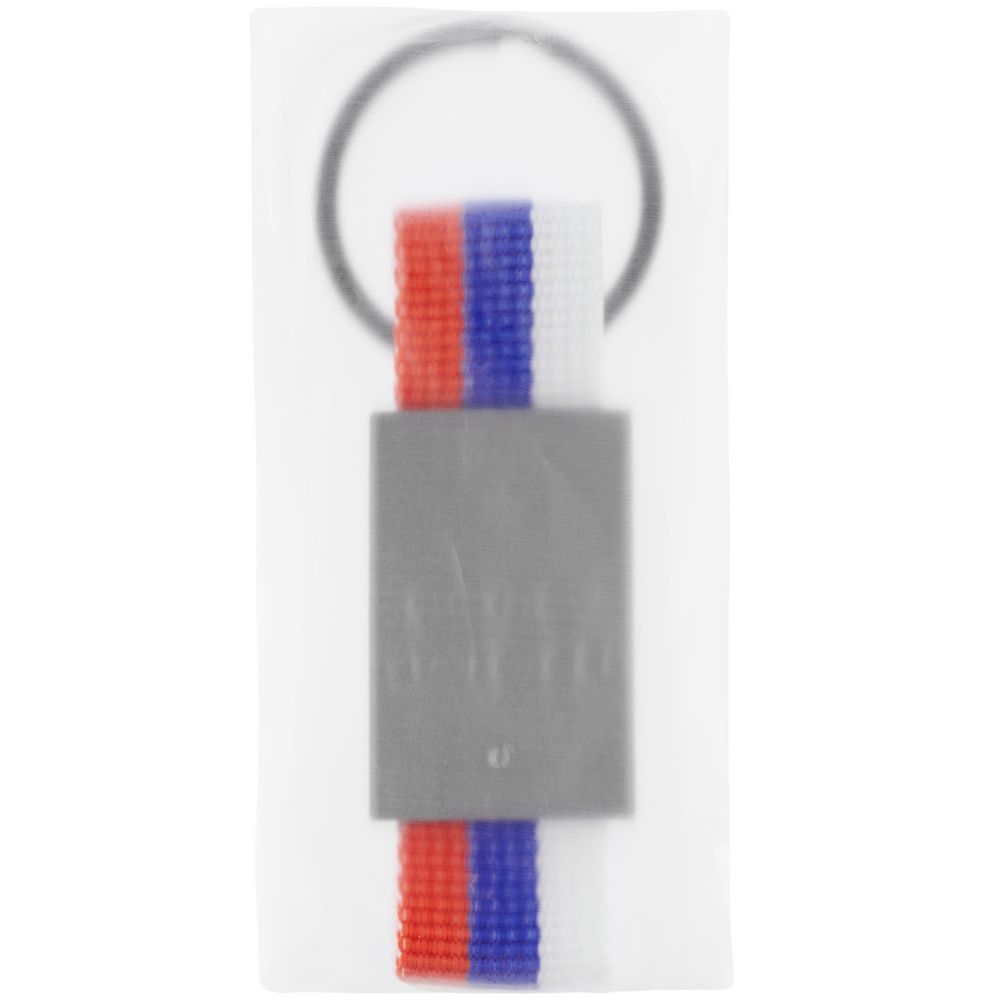 Металлический брелок с графитовым покрытием и тканью в виде триколора. Поставляется в индивидуальной упаковке. -