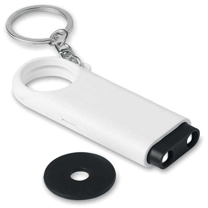 Брелок-фонарик с пластиковой монетой для получения тележки в магазине. 1 батарейка включена в комплект. -