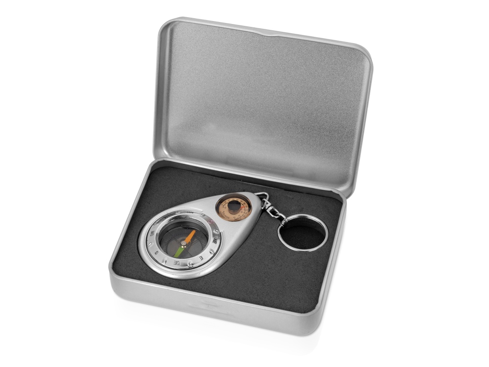 Всегда идти в нужном направлении - это очень важно в современном бизнесе! Брелок-компас не только укажет верный путь, но и покажет температуру воздуха! Подарок дополнен красивой металлической упаковкой, на крышке которого прекрасно разместится любая информация о дарителе. -