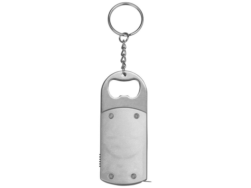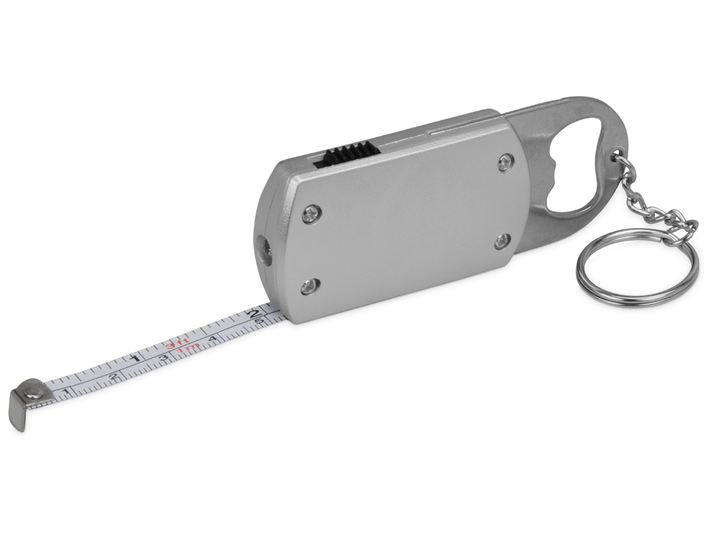Несмотря на внешнюю простоту, этот аксессуар - настоящий многофункциональный подарок 3-в-1. Брелок состоит из рулетки 1м, прочной металлической открывашки и небольшого, но яркого фонарика. -