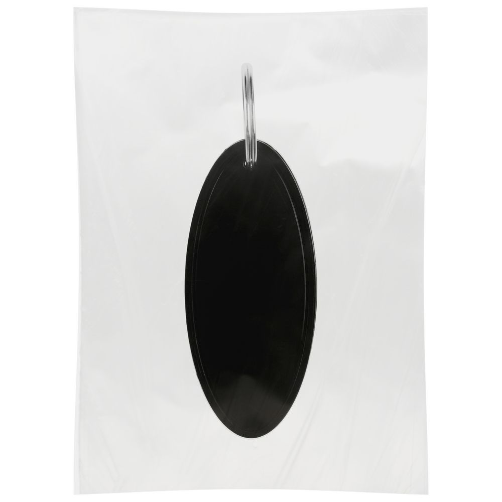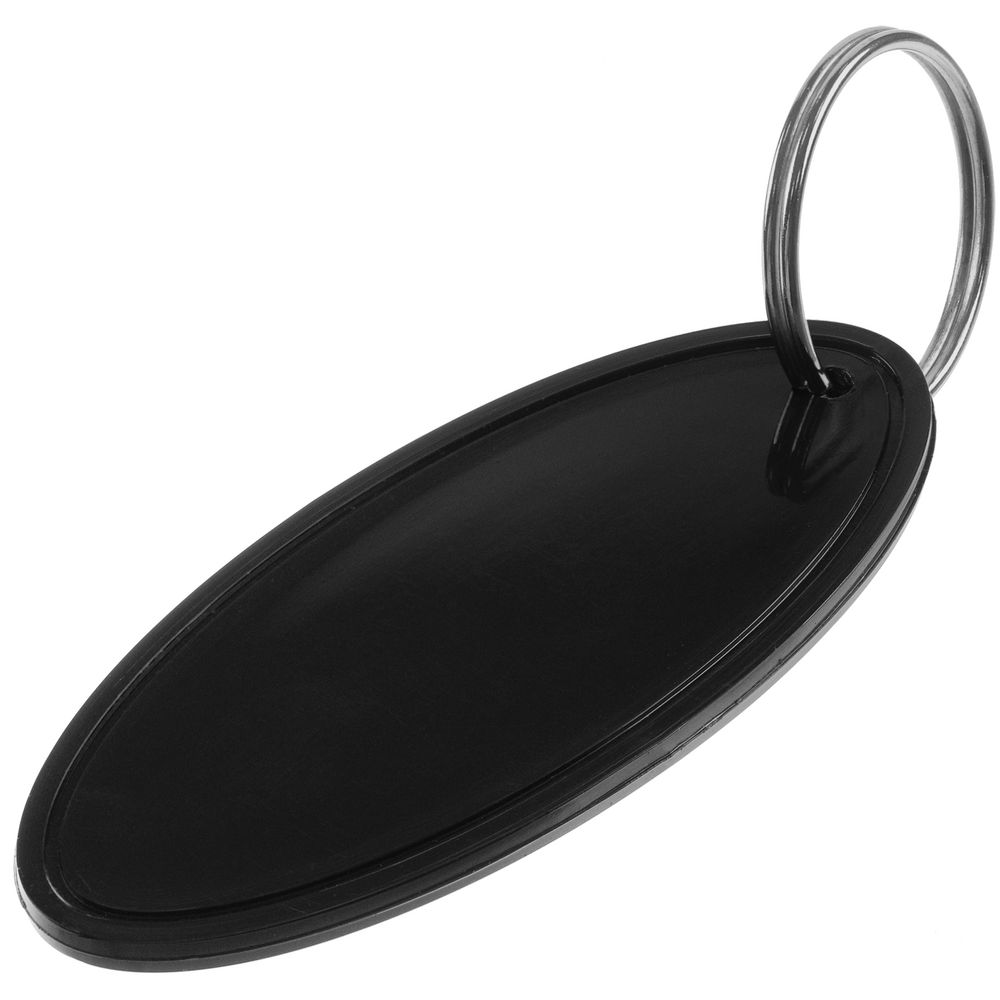 Лаконичный брелок из полипропилена с металлическим кольцом.