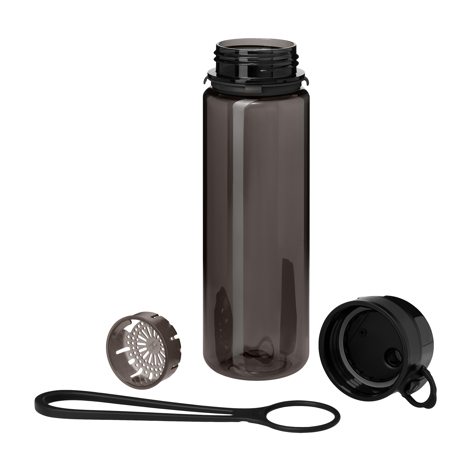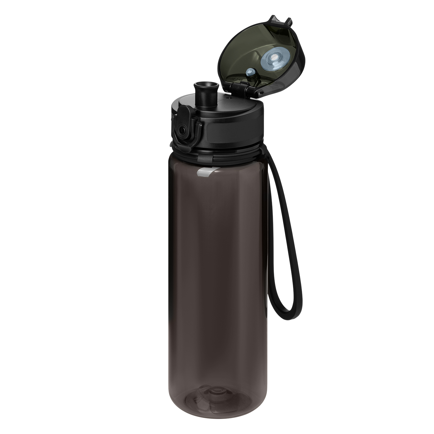 Прочная и легкая, она изготовлена из экологичного пластика без содержания БФА — идеально для тех, кто заботится о здоровье и окружающей среде. Удобная крышка с фиксатором клапана надежно защищает от протекания и случайного открытия, а ремешок-петля удобен для переноски — в спортзале и в повседневных делах.