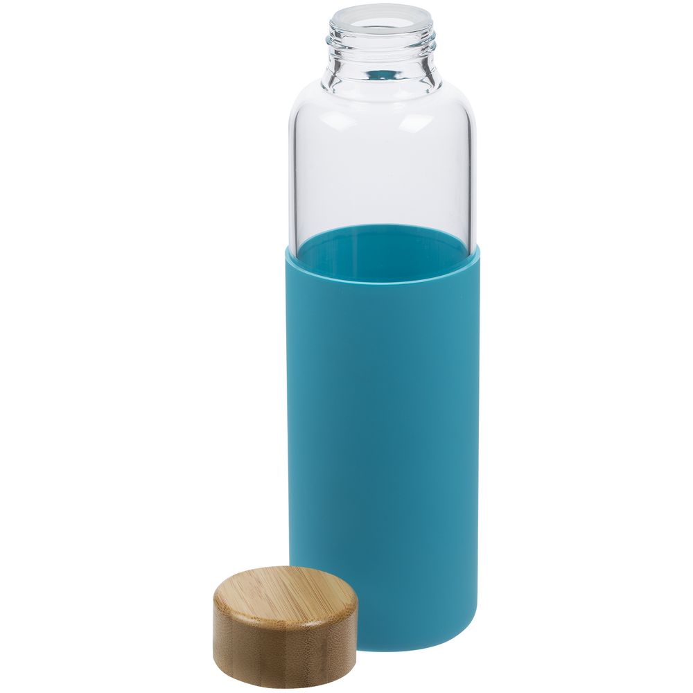 Бутылка со стеклянной колбой и крышкой из бамбука — изящное решение для тех, кто предпочитает природные материалы. Яркий силиконовый чехол защищает колбу от повреждений.- Объем 600 мл