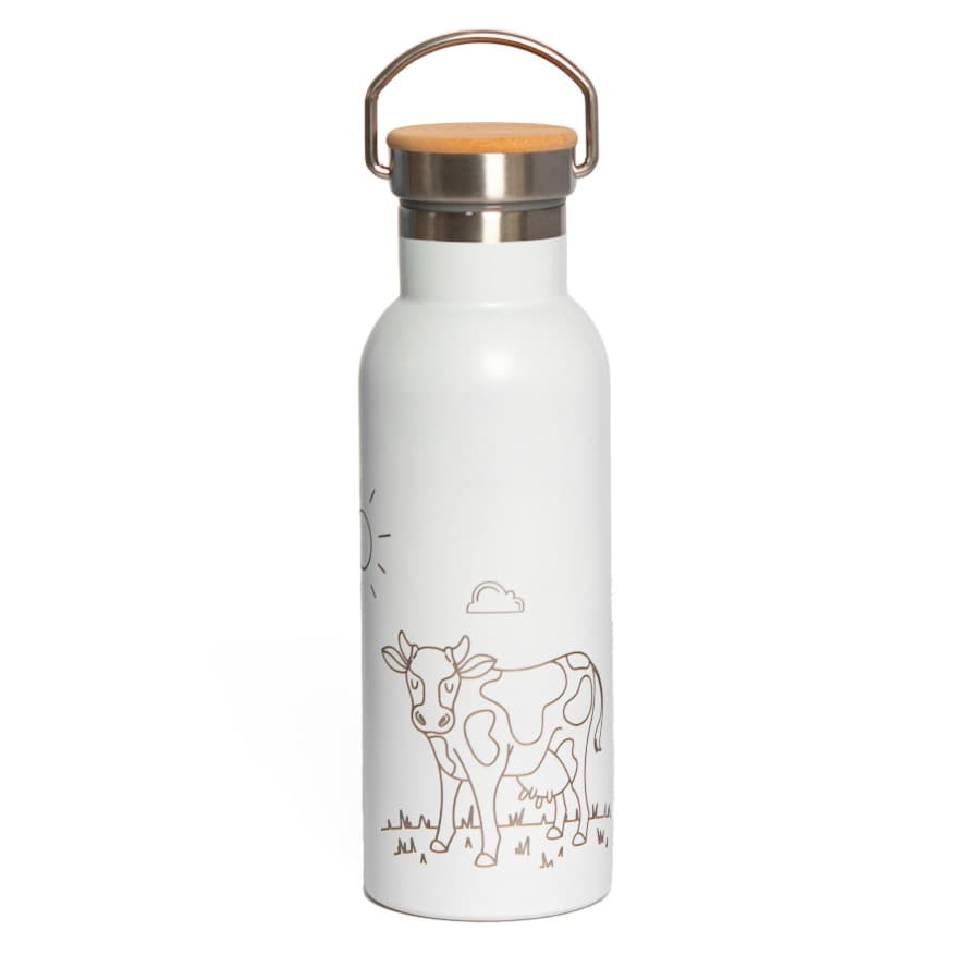 Бутылка для воды с двойными стенками из нержавеющей стали.Держатель на крышке для удобства переноски.Верхняя часть крышки из бамбука, отлично подходит для персонализацииБлагодаря двойным стенкам, температура напитка в бутылке будет в полной сохранности на протяжении 2-3 часов.Индивидуальная упаковка - коробка из крафтового картона -