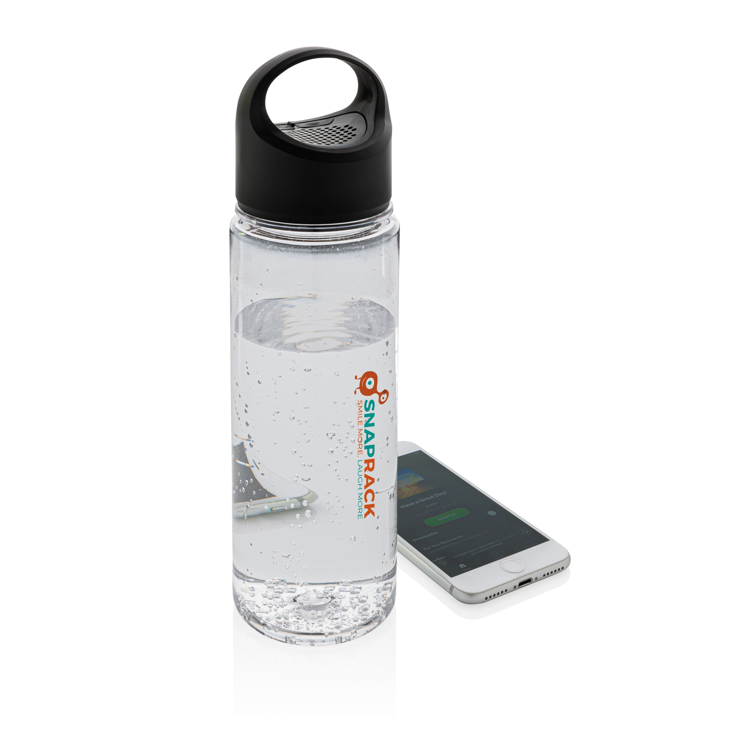 Тритановая бутылка с беспроводной колонкой мощностью 3W. Время работы колонки — 3 часа. Объем 680 мл.