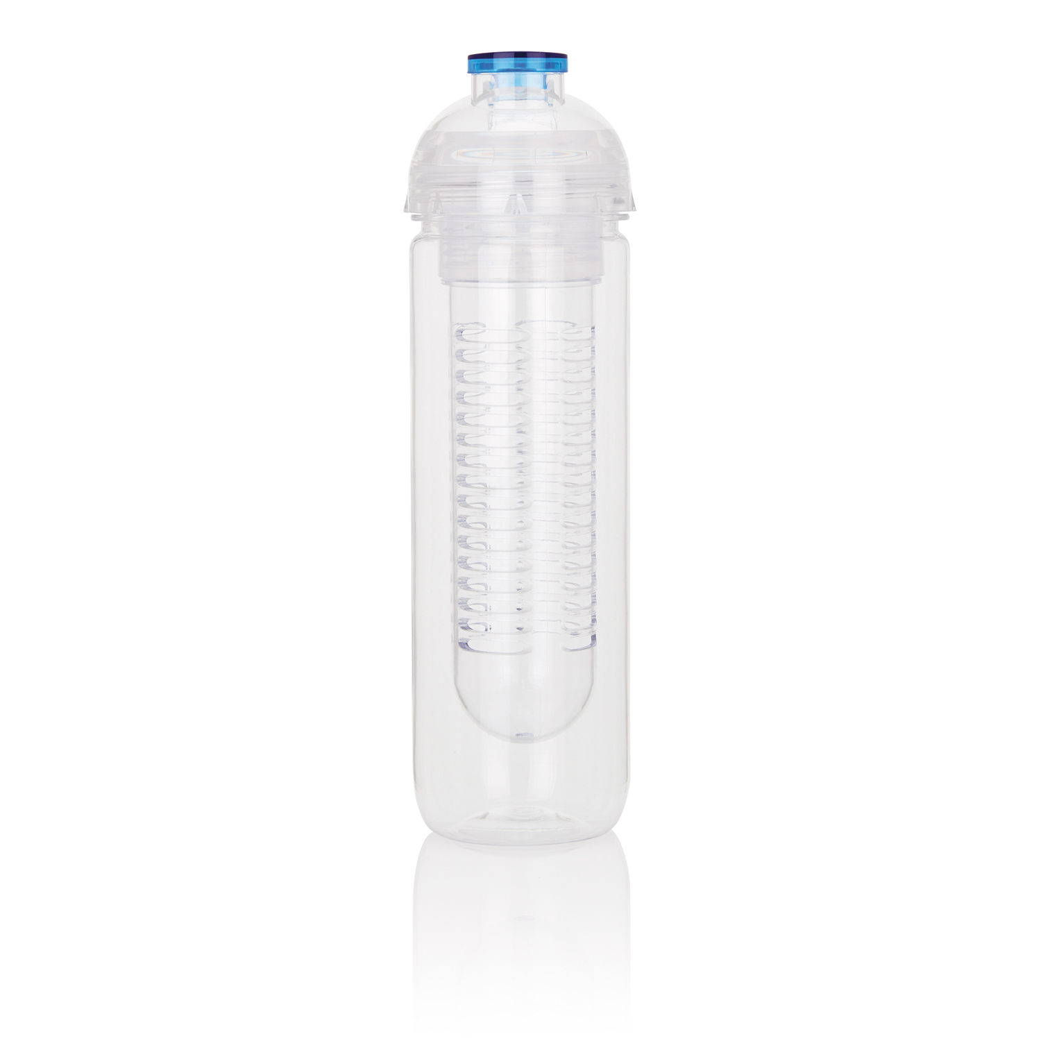 Бутылка для воды объемом 500 мл изготовлена из экологичного материала Tritan, который безвреден для человека, не впитывает запахи и не содержит BPA. В бутылке предусмотрен удобный контейнер для фруктов, который позволит делать вкусные миксы из воды и свежих фруктов, а также в него можно класть кусочки льда для охлаждения напитка.