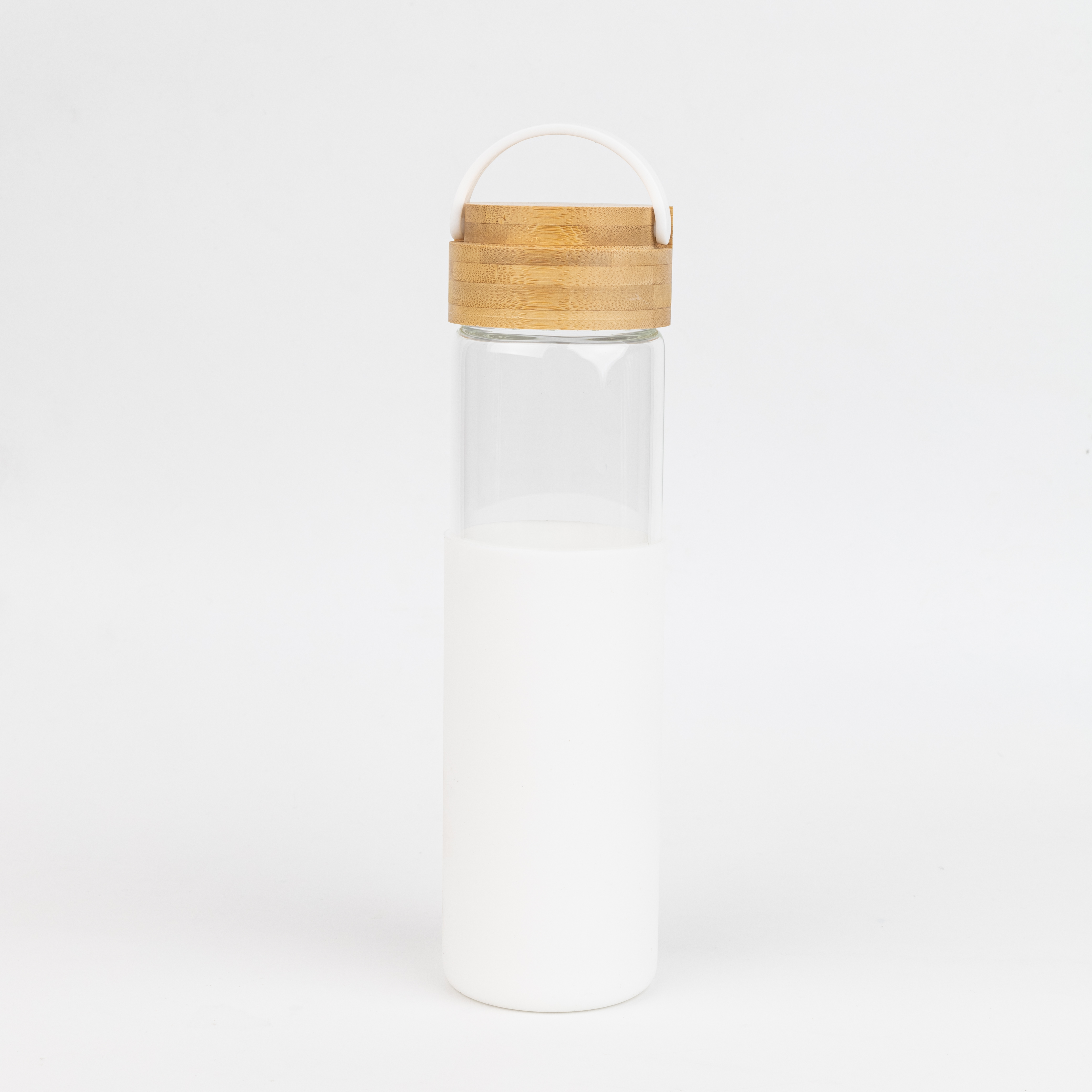 Бутылка стеклянная с силиконовой манжетой и бамбуковой крышкой Glass, белая