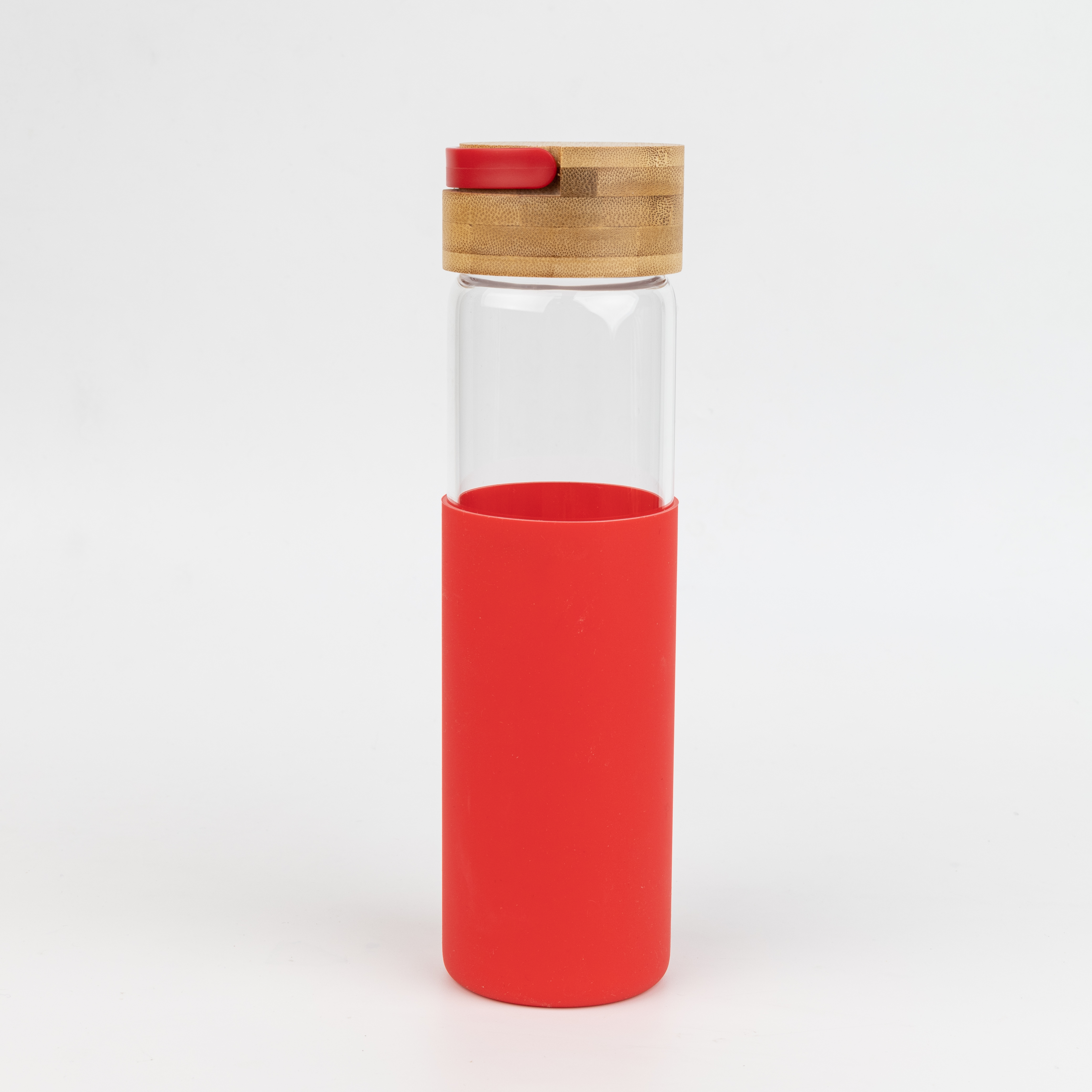 - Размер: Бутылка стеклянная с силиконовой манжетой и бамбуковой крышкой Glass, красная