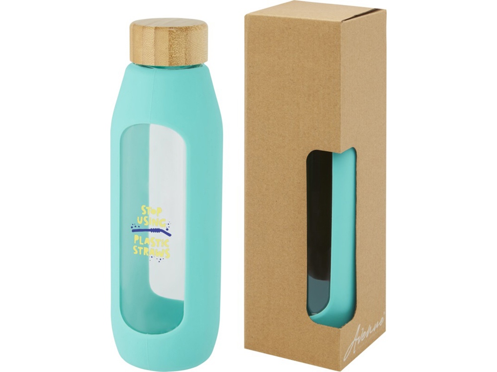 Экологичная многоразовая бутылка для воды, которая сохраняет воду чистой. Бутылка изготовлена из прочного боросиликатного стекла без содержания вредных химических веществ, благодаря чему сохраняется настоящий вкус чистой свежей воды. Имеет силиконовый держатель и герметичную крышку из органического бамбука. Протестировано и одобрено согласно немецкому законодательству о безопасности пищевых продуктов (LFGB), а также проверено на содержание фталатов согласно нормам REACH. Объем 600 мл. Сняв держатель и крышку, бутылку можно мыть в посудомоечной машине. В подарочной коробке из переработанного картона. -