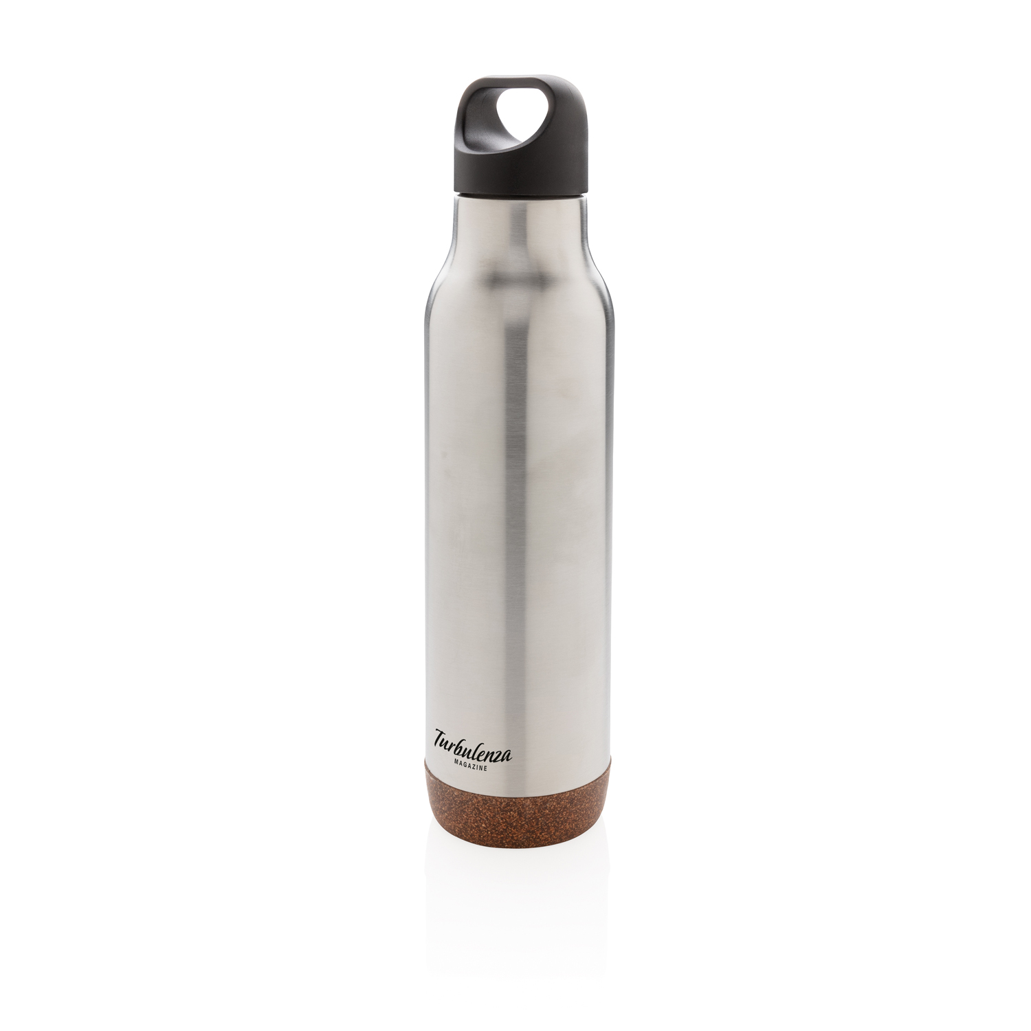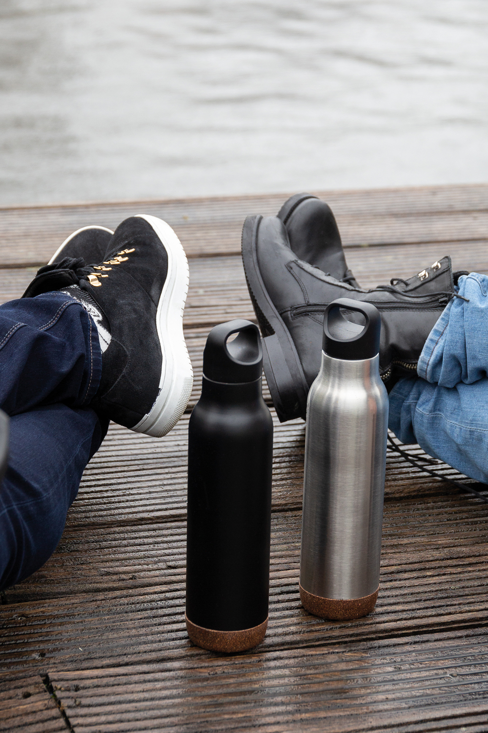 Герметичная вакуумная бутылка. Внутренняя стенка бутылки выполнена из нержавеющей стали марки 304, внешняя – из нержавеющей стали марки 201. Низ бутылки сделан из коры пробкового дуба – одного из самых лёгких, натуральных природных материалов. Пробка - 100% экологичный материал, а главное, что его производство не вредит деревьям. Благодаря своим уникальным свойствам пробка не впитывает влагу, обладает хорошей термоизоляцией и приятна на ощупь. Бутылка сохранит ваши напитки теплыми до 5 часов и прохладными до 15 часов. Объем: 600 мл
