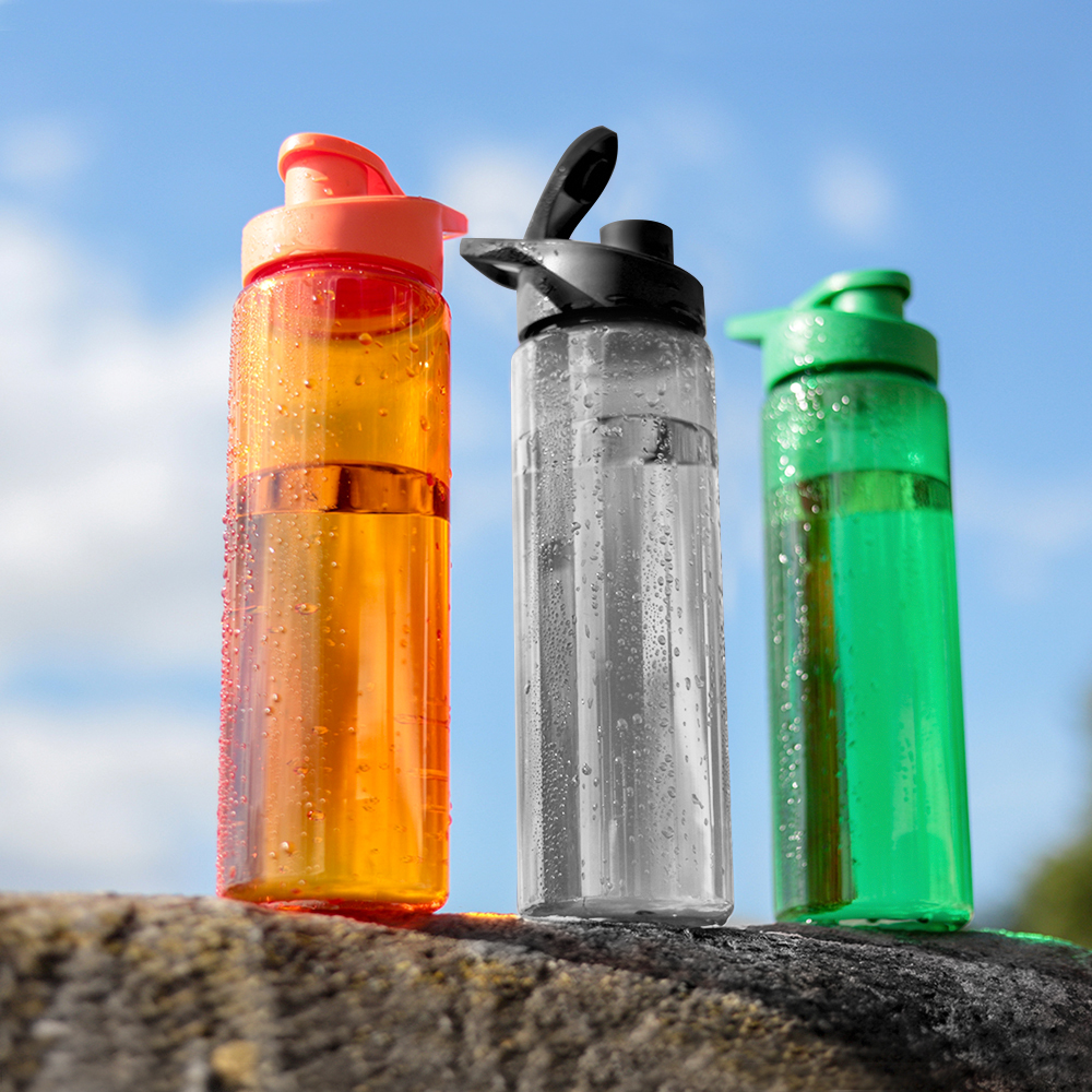 Бутылка для воды Ronny с клапаном. На крышке бутылки имеется крепление, которое позволяет закрепить бутылку на рюкзаке или на поясе.- Виды нанесений: УФ-печать А2, Тампопечать большая, УФ - DTF, УФ-Лак, УФ-Цвет+Лак