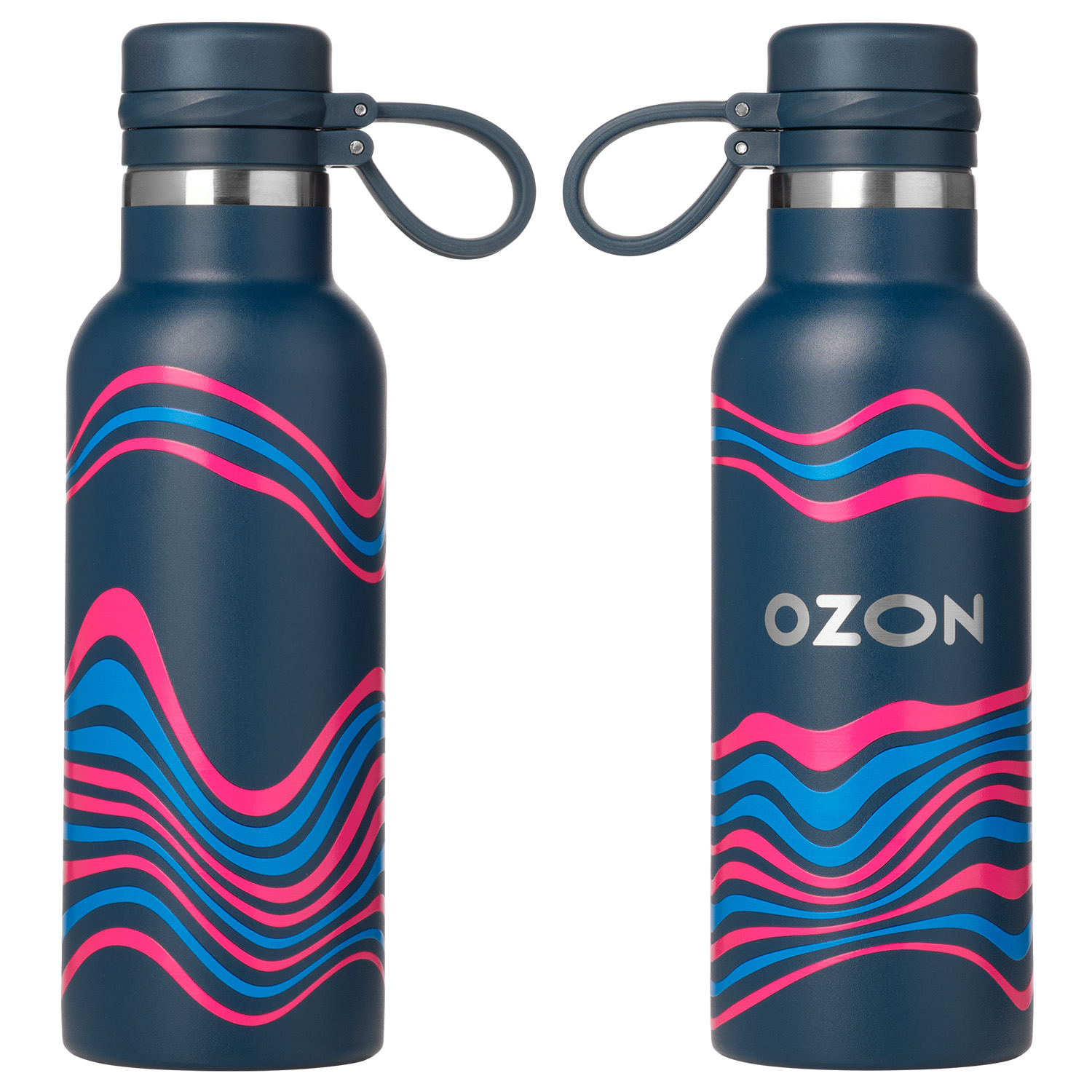 Вакуумная герметичная конструкция выполнена из двухслойной высоколегированной стали 304 марки, что делает конструкцию более прочной и устойчивой к мелким сколам и царапинам. Крышка из высококачественного пластика, оснащена удобной силиконовой петелькой для переноски. Бутылку можно переворачивать и класть в сумку.