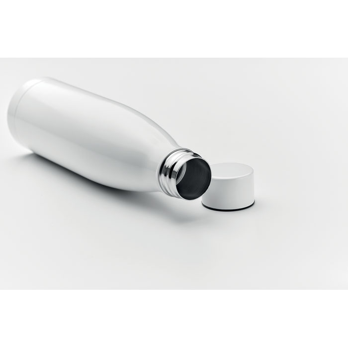Термос-бутылка вакуумная двустенная из нержавеющей стали. Объем 500 мл. При гравировке металлической части корпуса вскрывается темно-серебристый матовый цвет. -