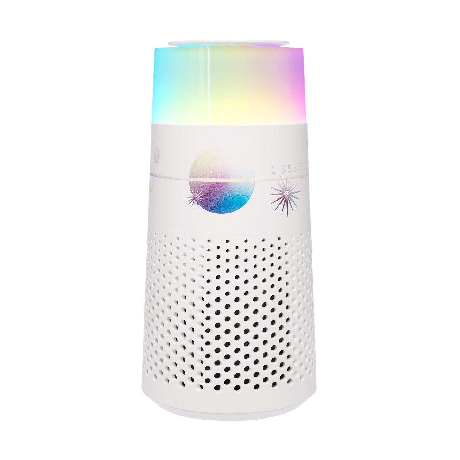 Мини-очиститель воздуха с радужной LED-подсветкой. Высококачественный фильтр с тройной системой фильтрации в сочетании с высокоскоростным вентилятором очищают воздух, поглощая и фильтруя различные загрязнители через гладкую аэродинамическую трубу. Освежение воздуха за несколько минут.