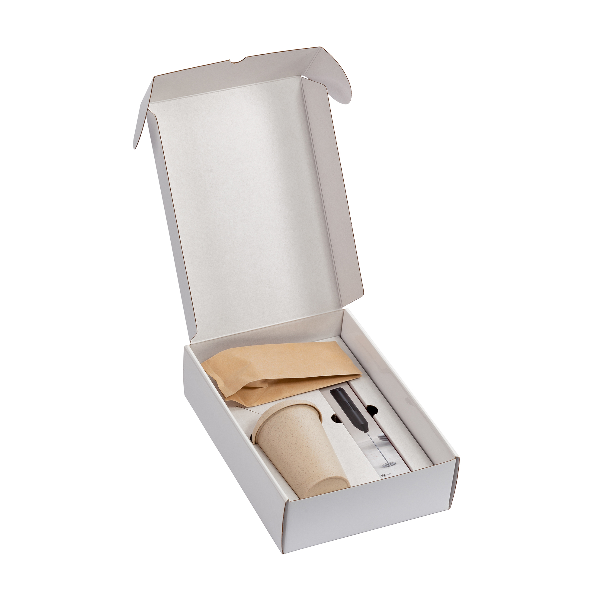 Эко-набор Coffee bean станет приятным подарком для поклонников брать кофе с собой. Кофейный стаканчик изготовлен из натурального материала, объём 0,3 удобно брать с собой формате “to go”. Капучинатором удобно взбивать молоко для кофе, чтобы напиток получился с настоящей пенкой!