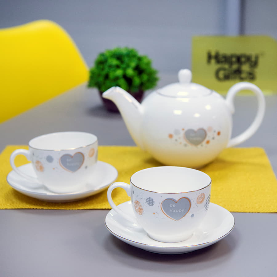 Чайник и две чайных пары GOLD в упаковке, 250мл и 1200мл, костяной фарфор