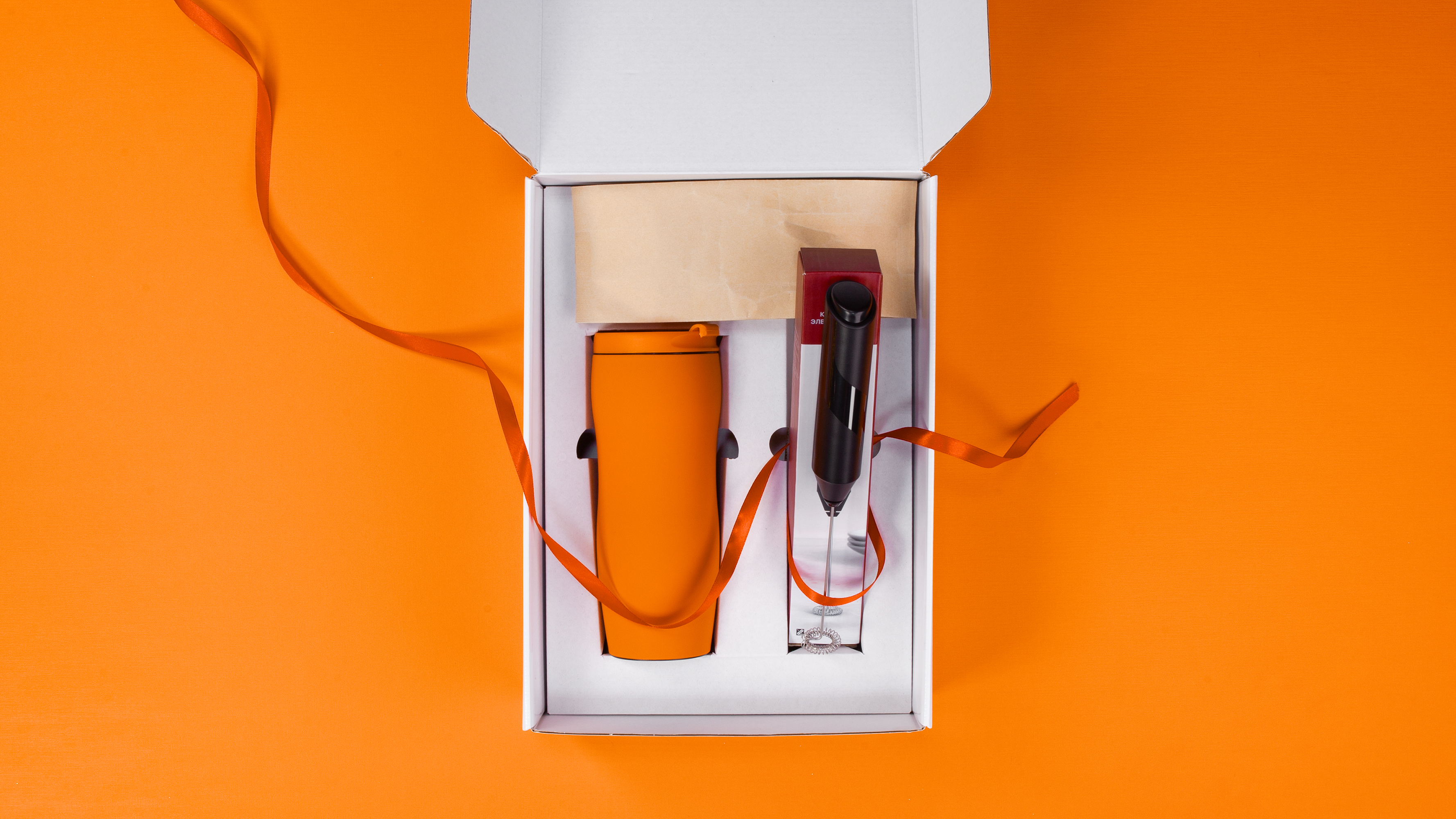 Набор, который станет приятным подарком для всех любителей кофе: зерновой кофе, термостакан и капучинатор для молока, чтобы ваш напиток получился с пенкой!